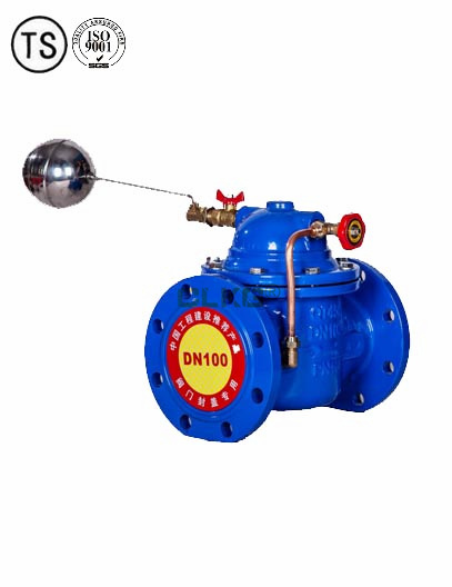 工作原理当管道从进水端给水时,由于针阀、球阀、浮球阀是常开的,水通过微型过滤器、针阀、控制室、球阀、浮球阀进入水池,此时控制室不形成压力,主阀开启,水塔(池)供水。当水塔(池)的水面上升至设定高度时,浮球浮起关闭浮球阀,控制室内水压升高,推动主阀关闭,供水停止。当水面下降时,浮球阀重新开启,控制室水压下降,主阀再次开启继续供水,保持液面的设定高度。