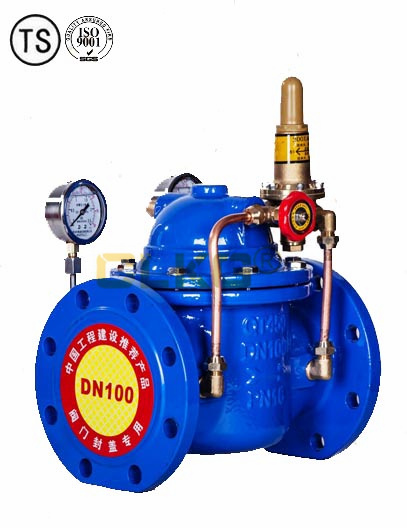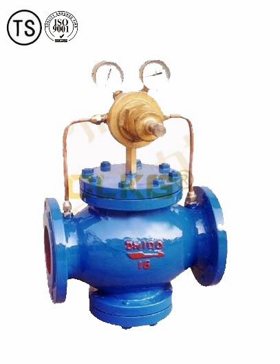 200X减压稳压阀由主阀、导阀、针阀、球阀、微型过滤器和压力表组成水力控制接管系统。使用时,当调定出口压力后,能自动保持稳定出口压力。本产品利用导阀自力控制,不需要其它装置和能源,保养简便,压力控制准确度高,受进口压力和流量影响小,减压稳压可靠。本系列阀门产品用于高层建筑、生活区等供水管网系统及城市供水工程。工作原理当阀门从进口端给水时,水流过针阀进入主阀控制室,出口压力通过导管作用到导阀上。当出···